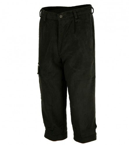 Klasické golfky, dvě klínové kapsy, stehenní kapsa, zadní kapsa, kapsička na nůž, dolní manžety zapínané kovovou sponou.