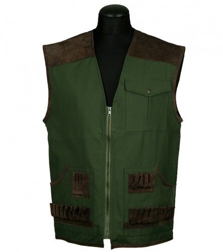 Vesta lovecká - hnědá kůže. Klasická vesta lovecká s nábojovými pásy a zdobením z pravé kůže v hnědé barvě. Vododpudivá úprava.