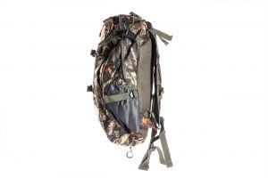 Batoh Wildee Hunting Camo má jednokomorovou konstrukci. Komora je doplněna o jednu přihrádku se stahovacím lemem. Na přední straně batohu nalezneme úchytný systém a jednu malou kapsu na drobné předměty. Na obou bocích jsou přišity síťované kapsy na láhev.